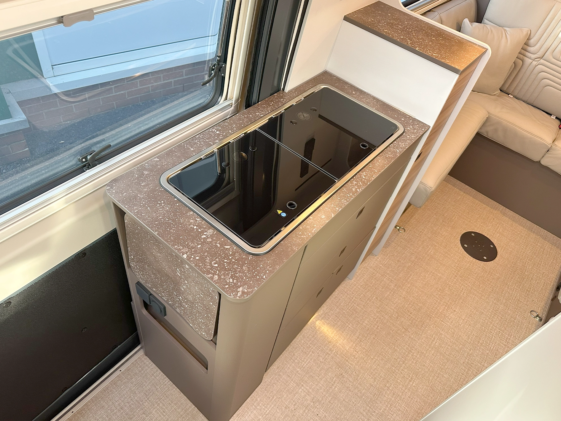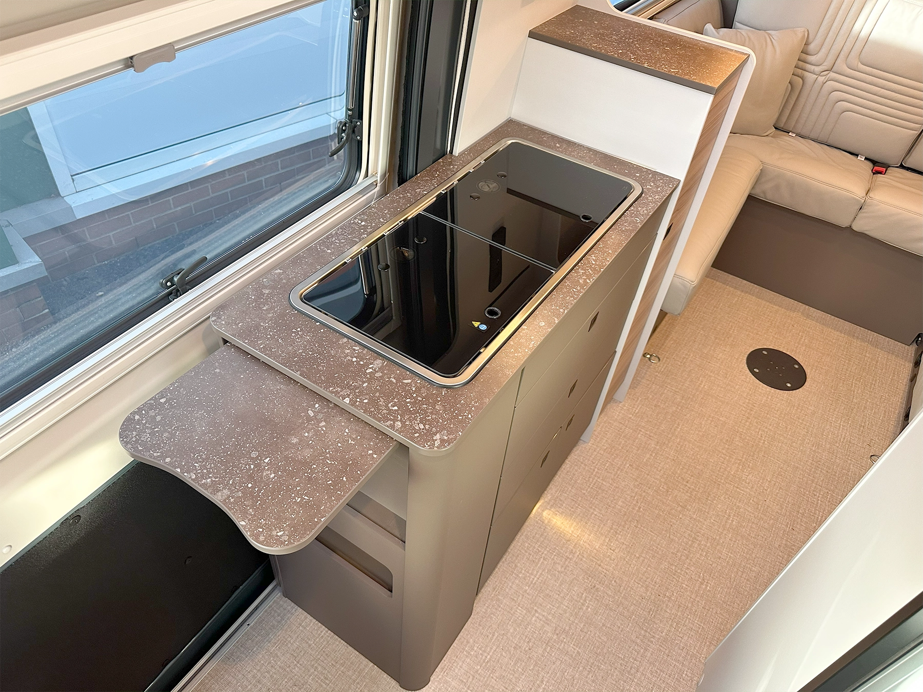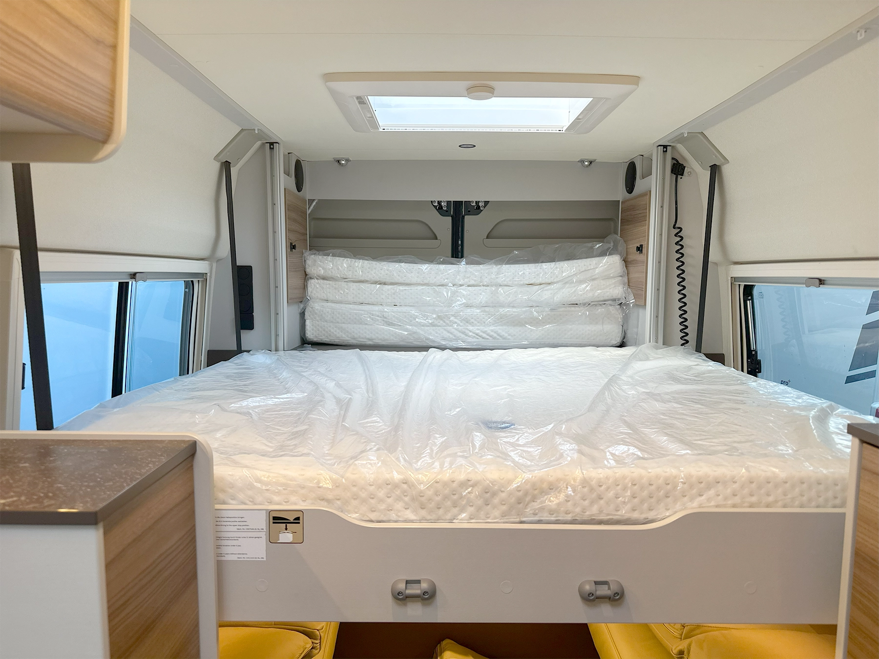 š Why this layout works The rear drop-down bed over a lounge gives proper night sleep without daily bed builds.