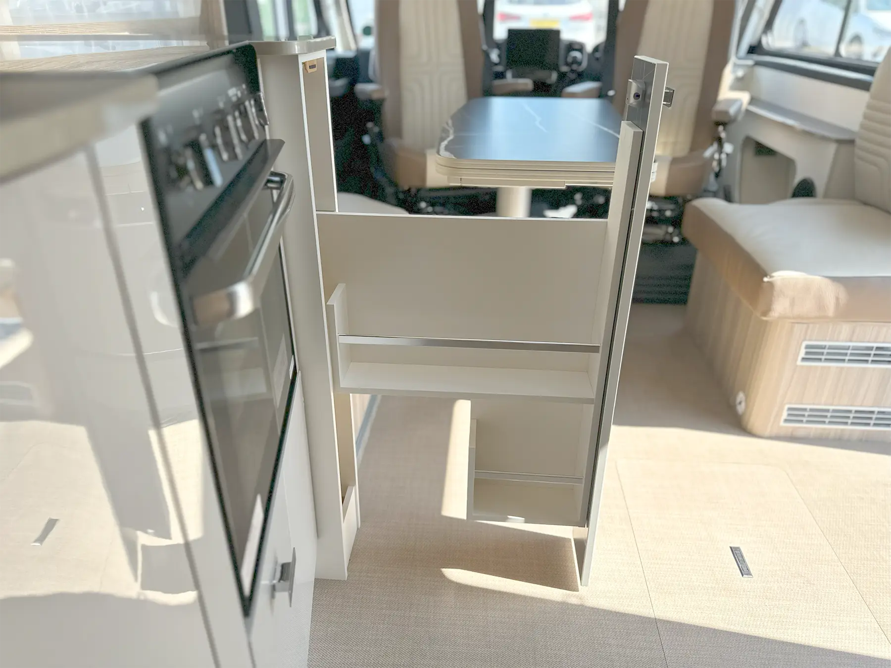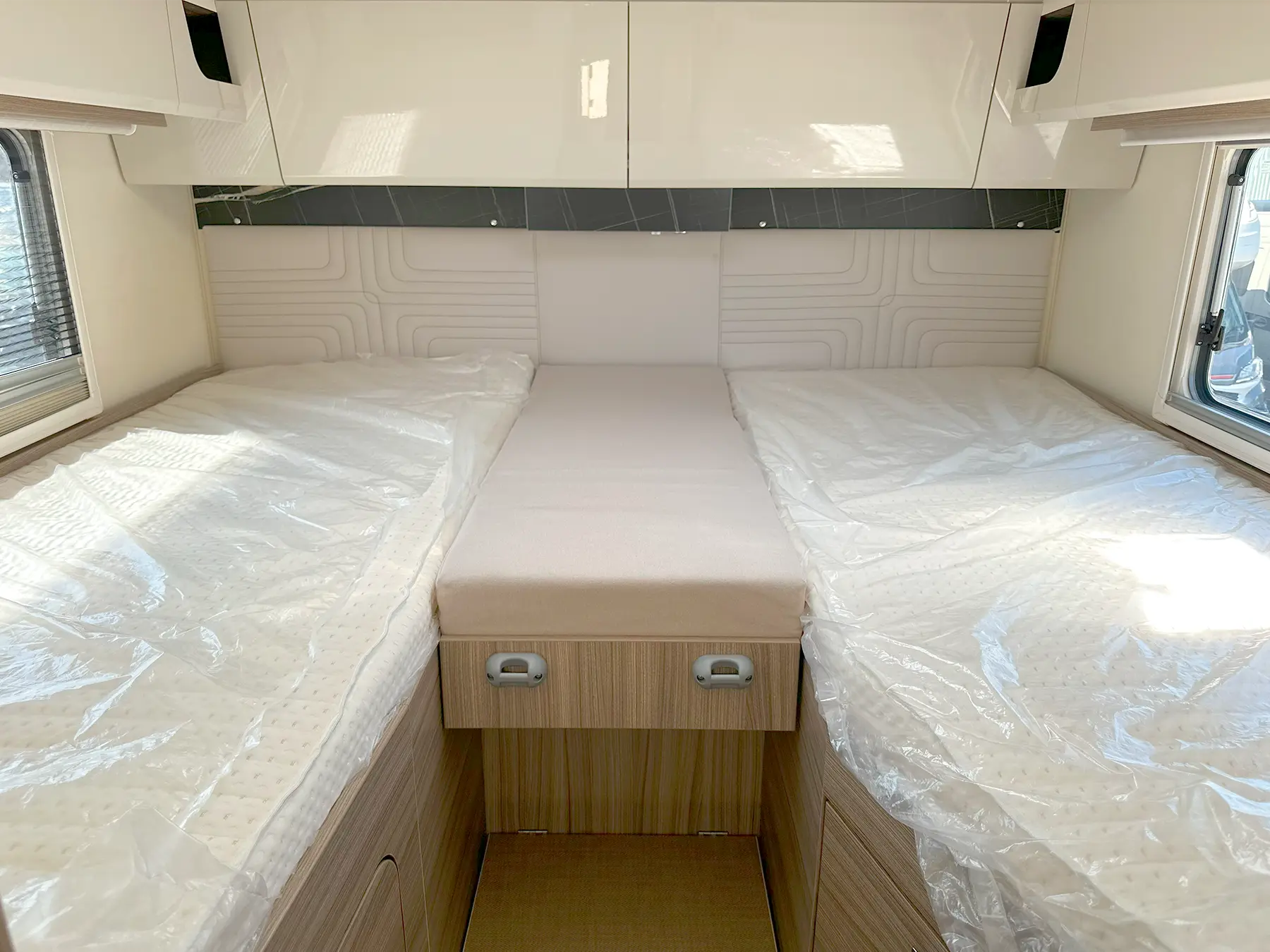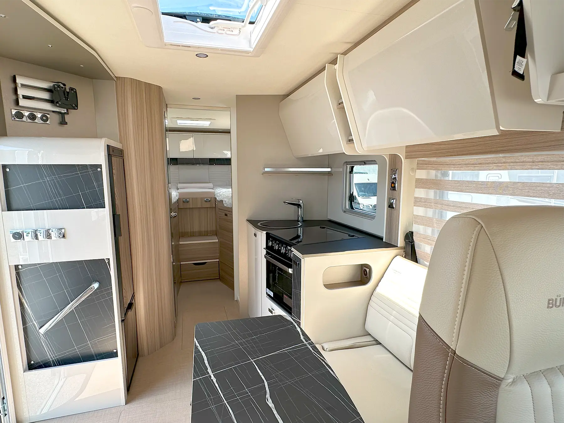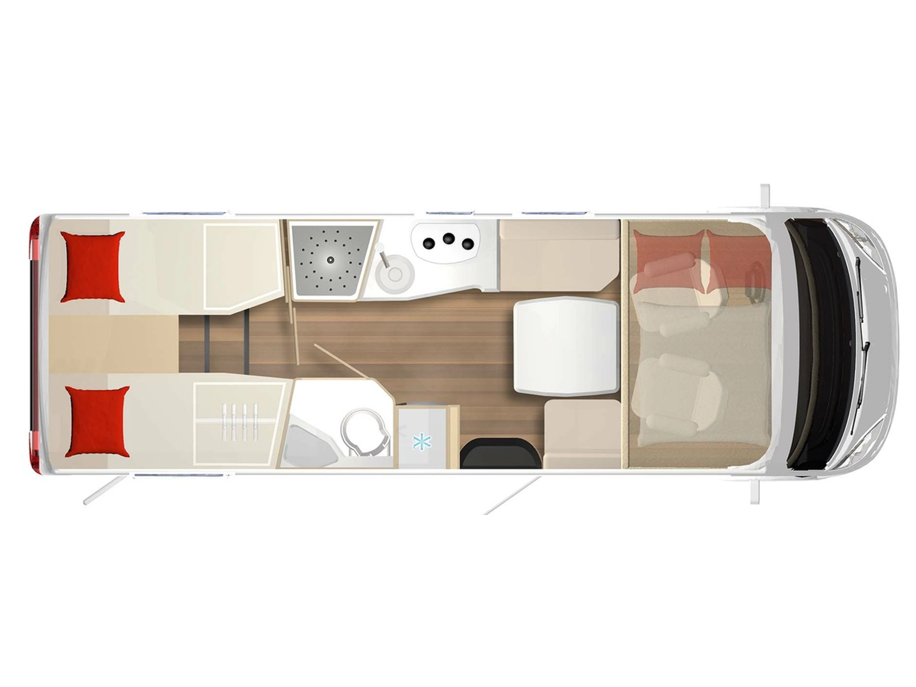 The Lyseo I is a high-quality fully-integrated model, based on a Fiat Ducato chassis. Thanks to the extra-large windscreen, as well as the integrated single LED daytime running light spots, you’ll always enjoy optimum vision. The popular, deceptively spacious model is characterised by wide access routes, a headroom height of 198cm and generously-sized washroom solutions. The snug dinette, the comfortable beds and the continuous insulated sandwich construction floor create even more comforts.