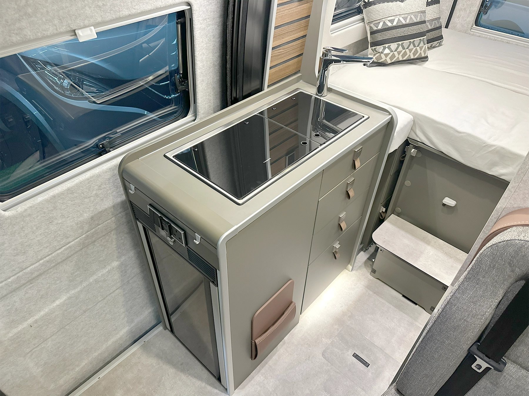 š Why this layout works A fixed rear bed keeps nights simple while the front lounge stays usable all day.
