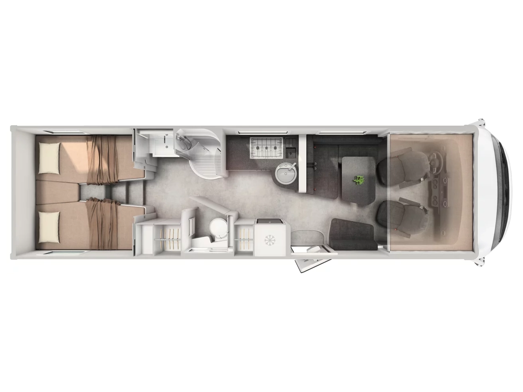 180 l fresh water tank, insulated and heated (20 l in driving position)