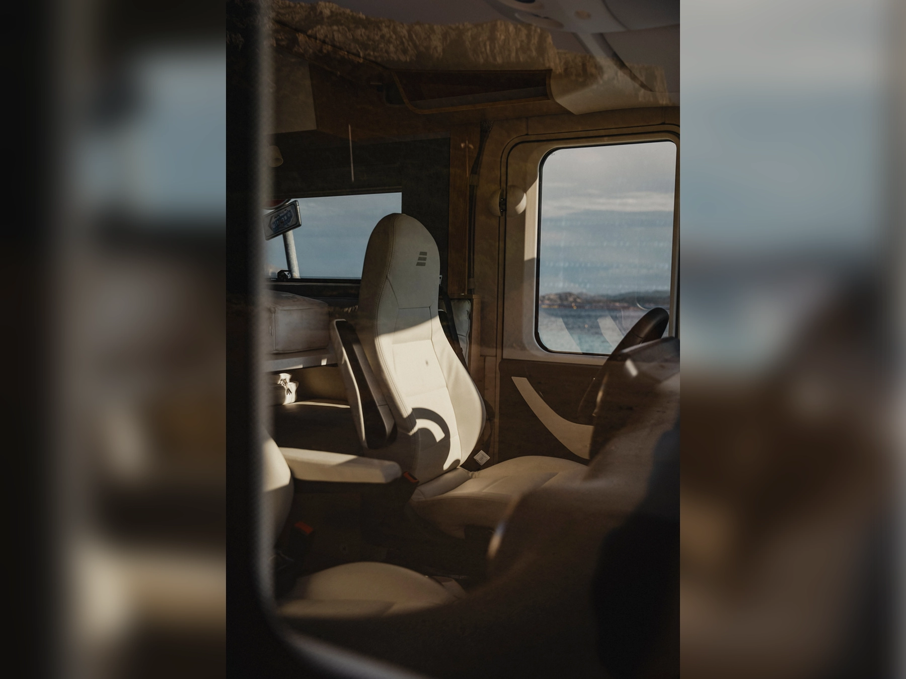 Cab seats, upholstered in living area fabric, swivelling, height- and tilt adjustable with 2 armrests