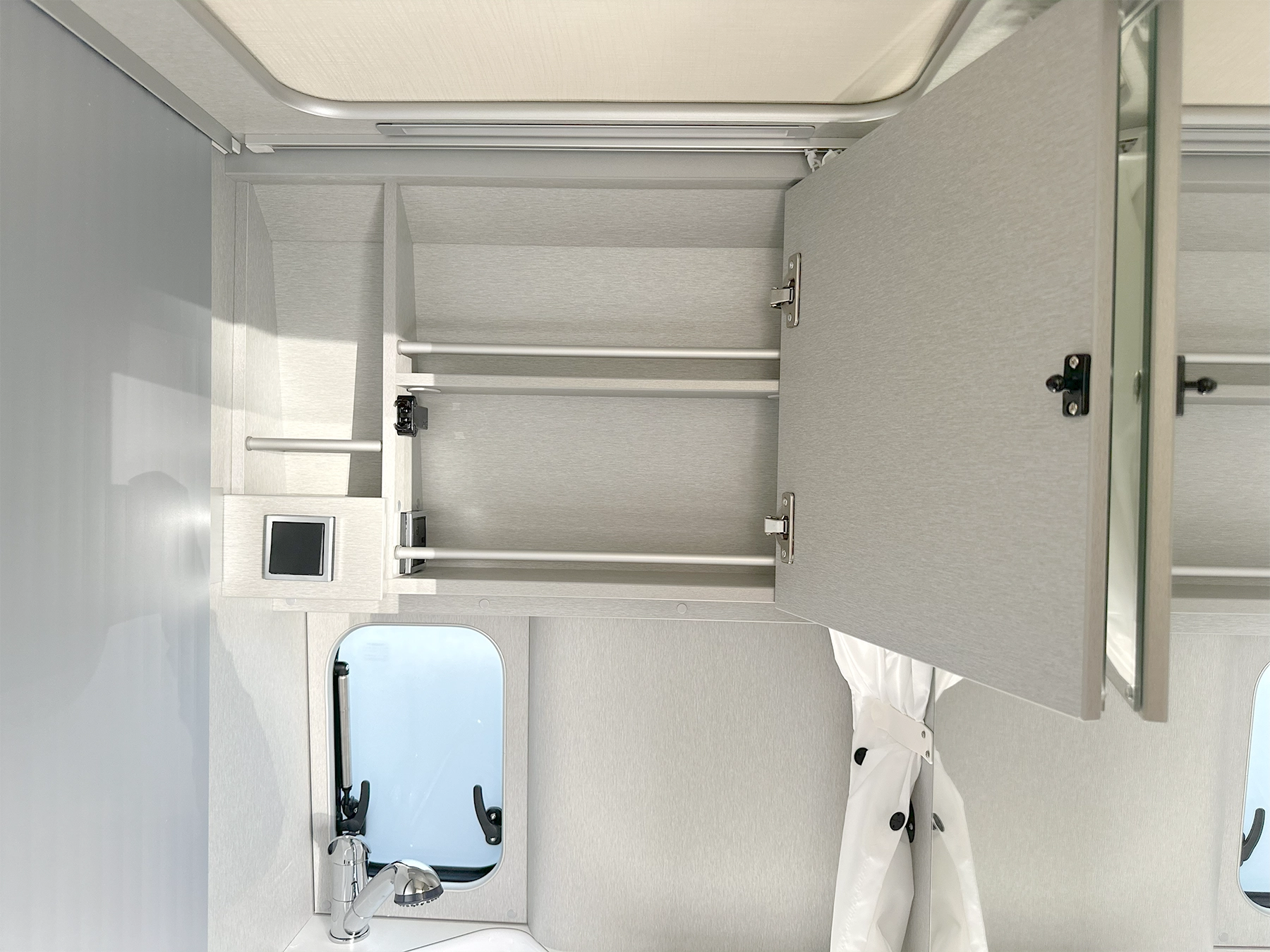 - Black gutter above the sliding door with integrated LED lighting