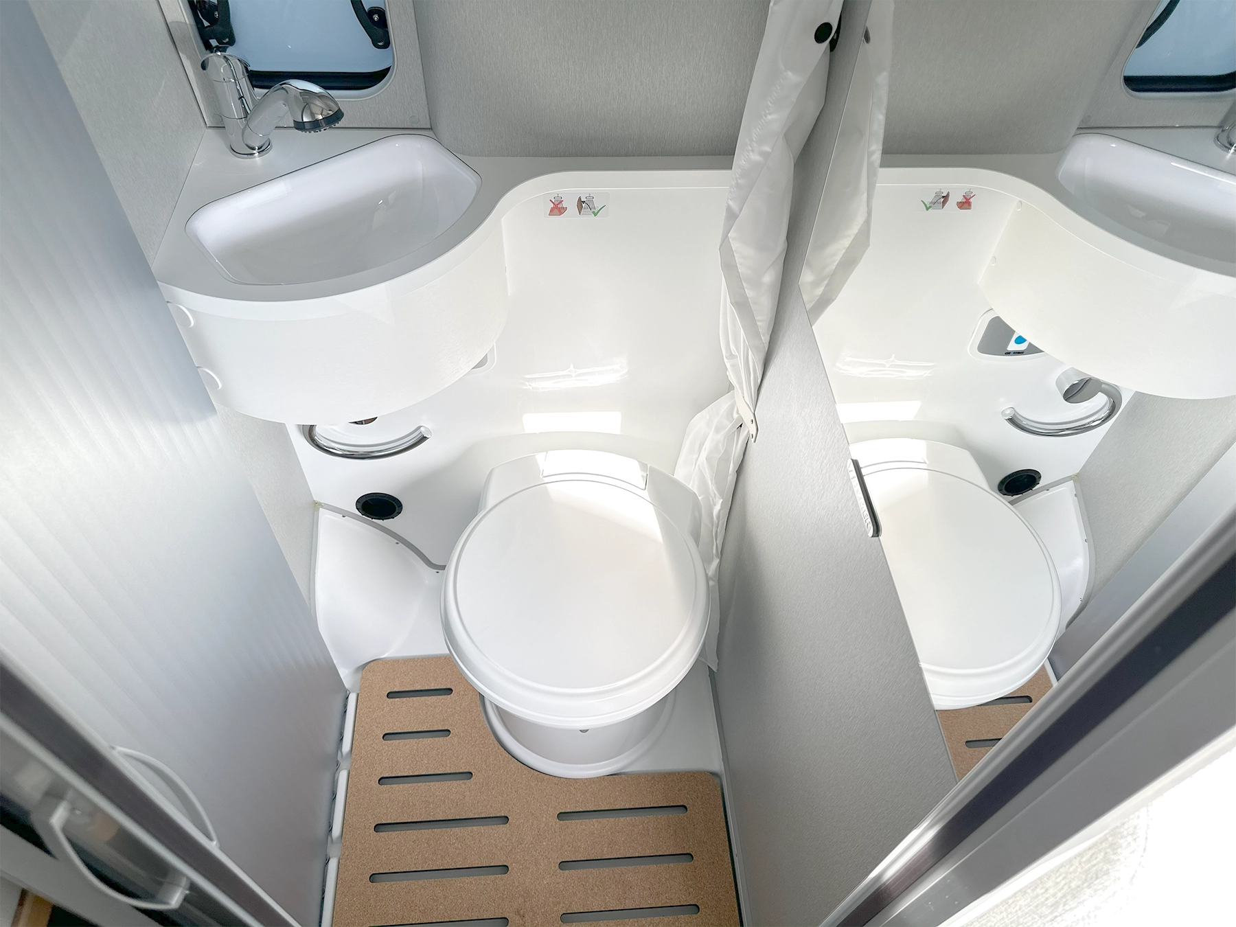 - Cassette toilet with level indicator