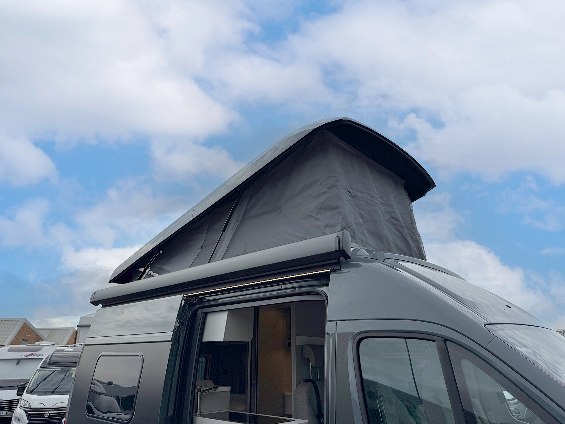 - Awning with special adapter for sleeping roof. Anthracite housing. 3.15m x 2.5m