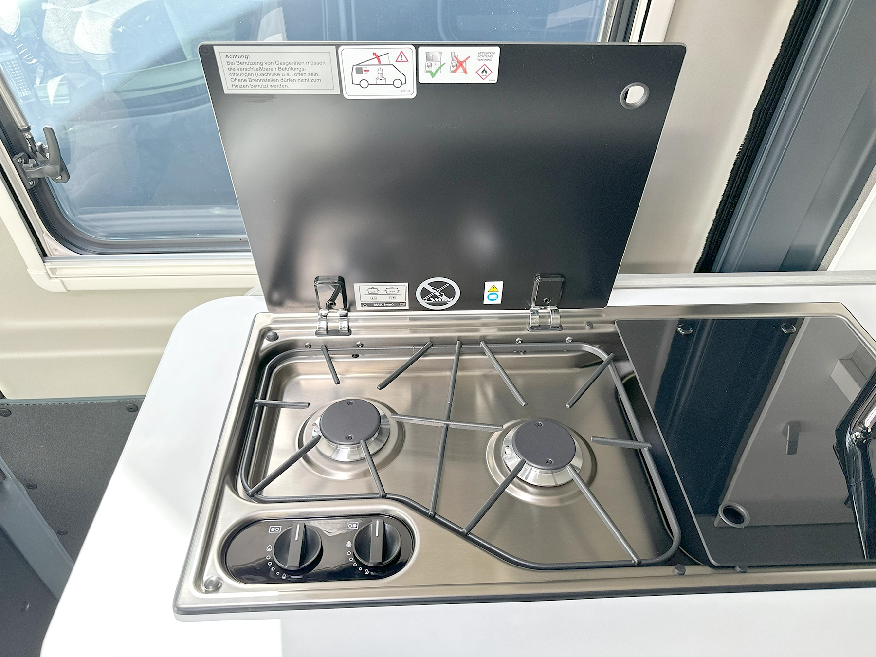 - Gas bottle compartment for two gas bottles