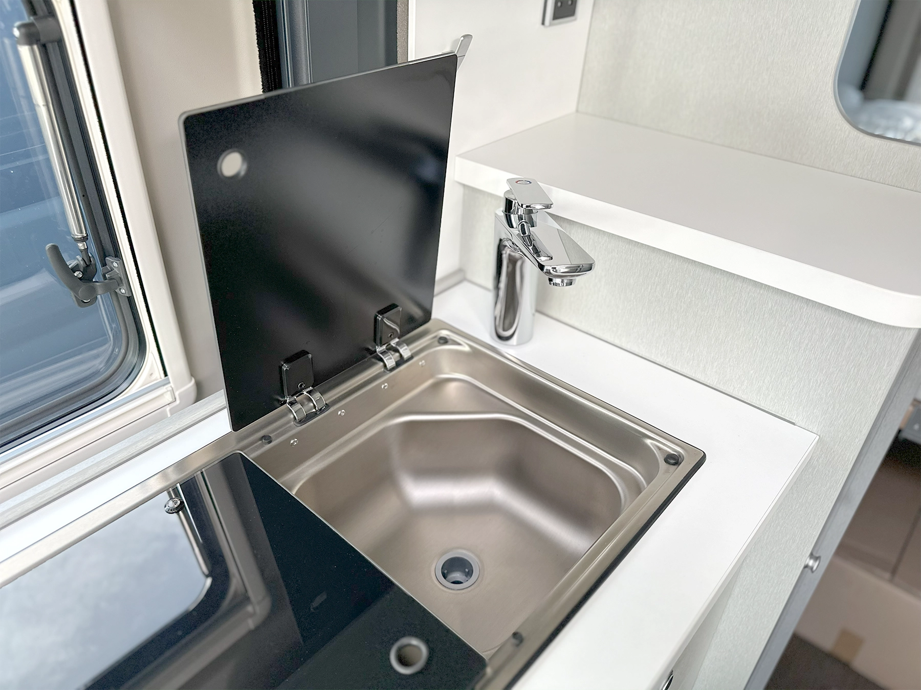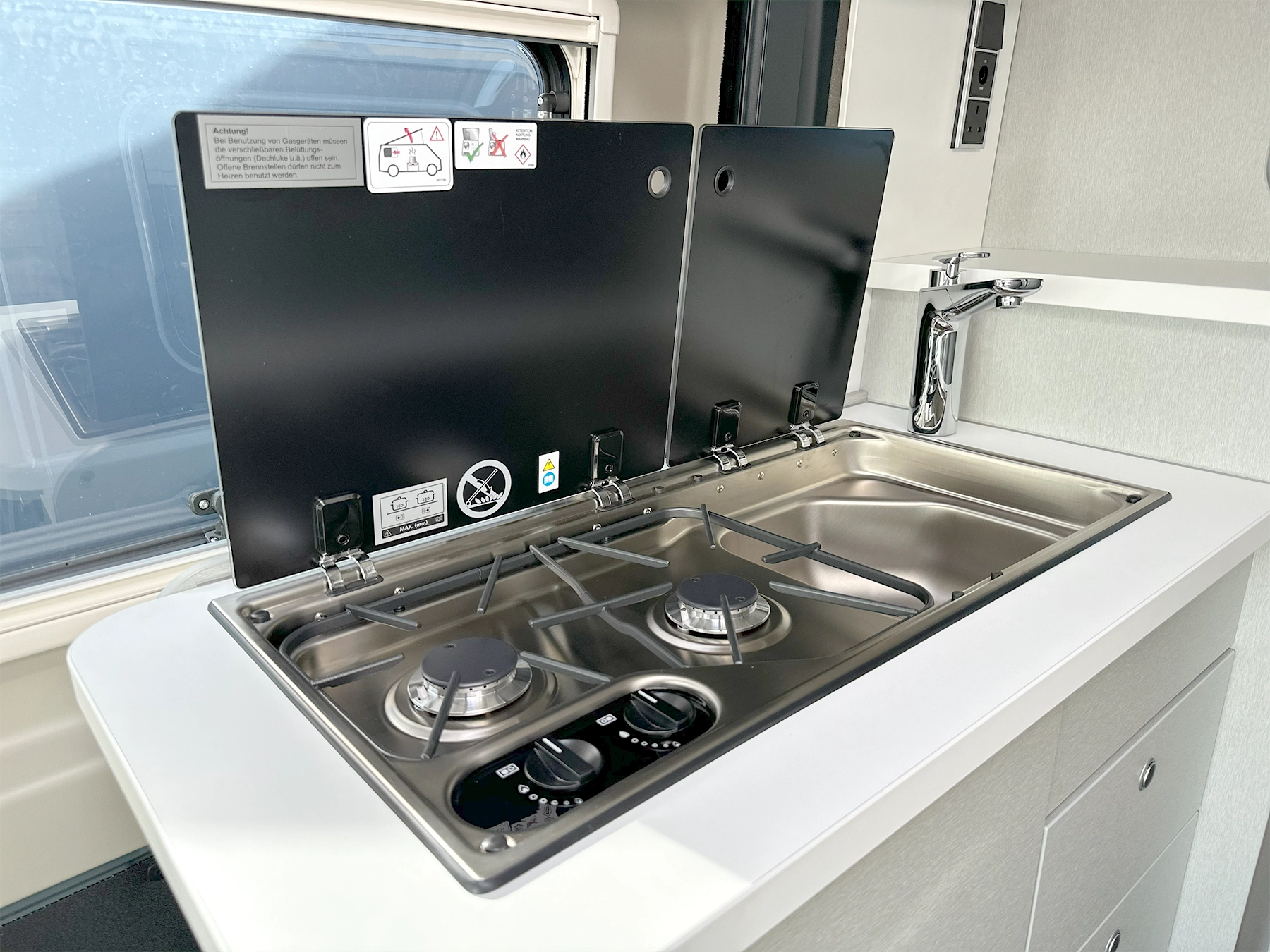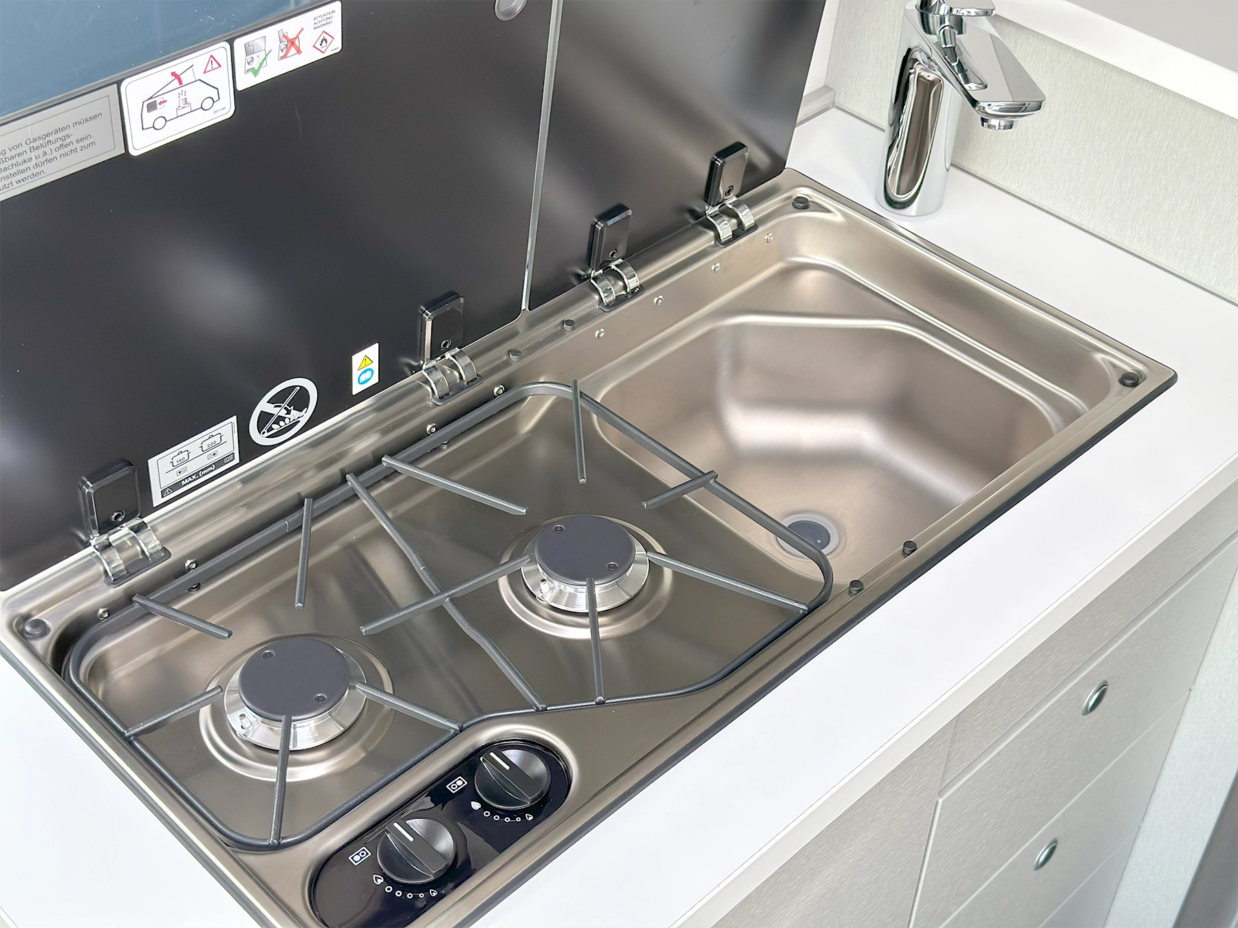 - Hob-sink combination with glass cover (two burner hob)