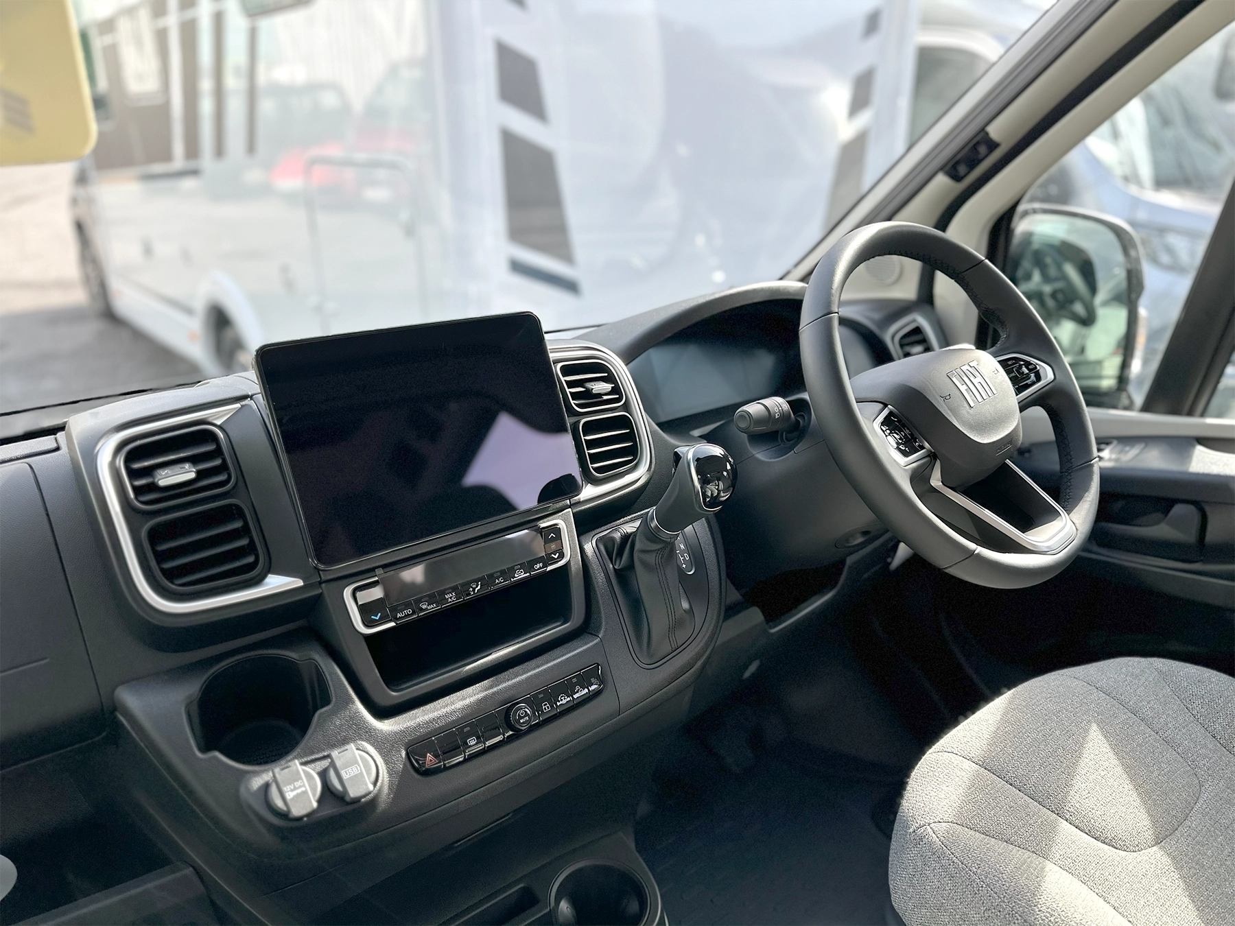 - Fiat infotainment system with 10″ touchscreen, integrate SatNav, DAB+, Apple Car Play, Google Android Auto inc. reversing camera and multifunctional steering wheel